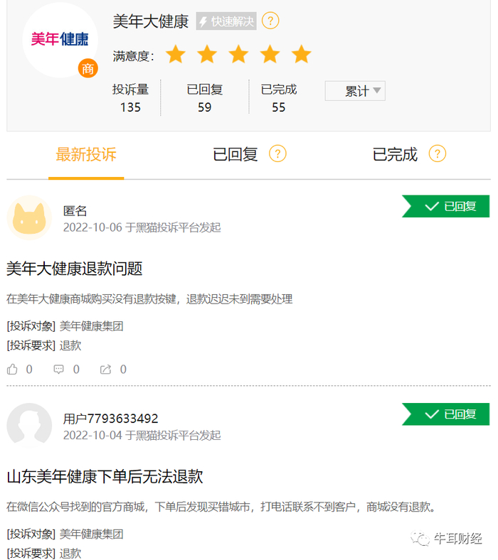 此外,有关美年大健康的投诉问题,也接连不断发生。
