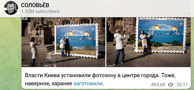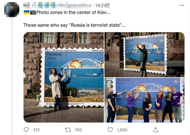 而主办方对此更表现出一副洋洋自得的样子,9日,多次发文号召民众前来拍照,“索洛维约夫(上文提到的俄方人士)不太喜欢这张照片,那正是大家绝对要来这儿拍照的理由!”“不用去正在熊熊燃烧的克里米亚大桥,来这儿就能拍照”云云。