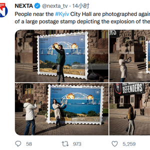 无独有偶,在克里米亚大桥爆炸事件发生仅数小时后,乌克兰国家邮政局也火速发布了一枚用以“庆祝”此事的新版邮票,《电讯报》称“邮票发布的时间引发了公众对爆炸性质的猜测”。