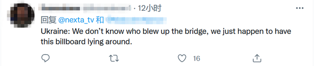 “乌克兰:我们不知道是谁炸了这座桥,我们只是碰巧看到了这个广告牌。”