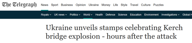 如此大肆消费、炒作克里米亚大桥爆炸事件,在乌克兰还不是个例。据《电讯报》等报道,8日乌克兰国家邮政局也火速发布了一枚用以“庆祝”此事的新版邮票。