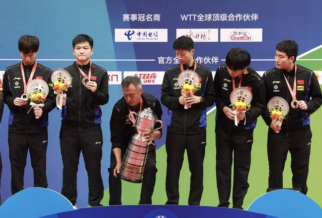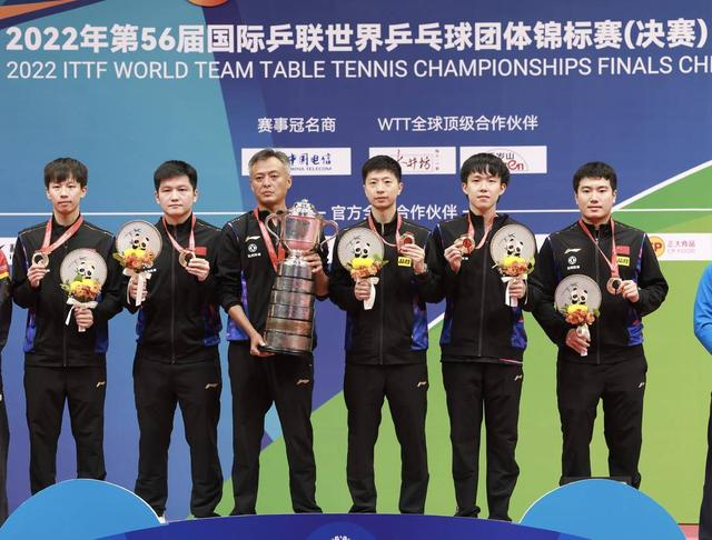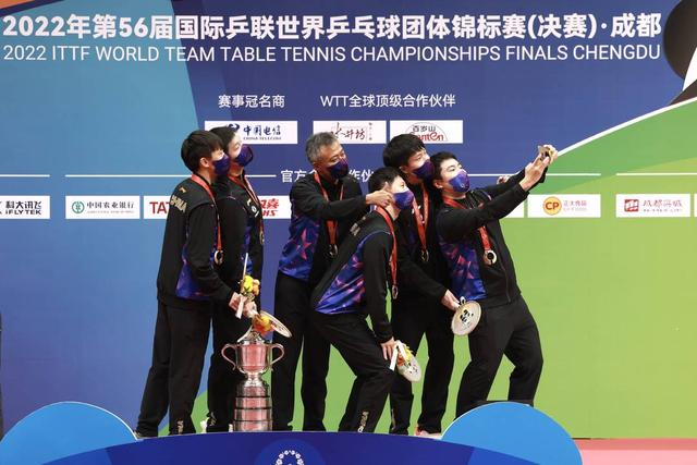 在赛后新闻发布会上,国乒男团主教练秦志戬表示,感谢国乒男团“五虎将”在成都世乒赛团体赛上的发挥,特别是最后半决赛、决赛上场的三位选手,他们代表着三个时代——“老中青”。