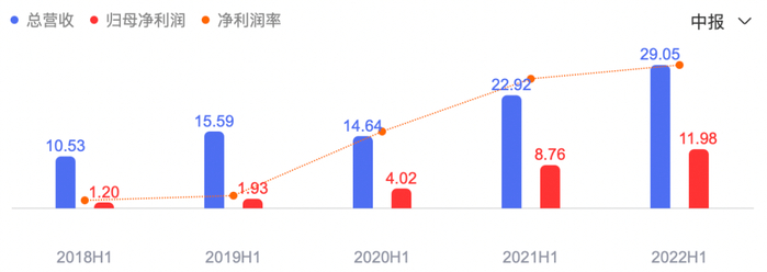紫光国微2018-2022半年报的营收、利润统计
