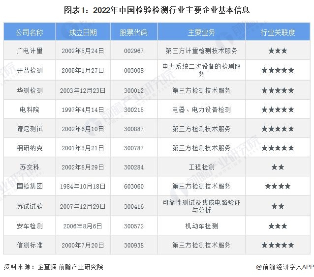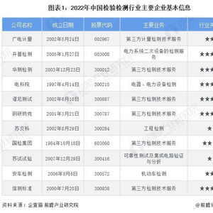 行业主要上市公司:广电计量(002967.SZ);开普检测(003008.SZ);华测检测(300012.SZ);电科院(300215.SZ);谱尼测试(300887.SZ);钢研纳克(300797.SZ)等。