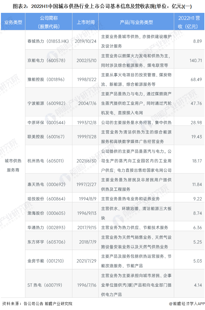 【最全】2022年中国城市供热行业上市公司全方位对比(附业务布局汇总、业绩对比、业务规划等)