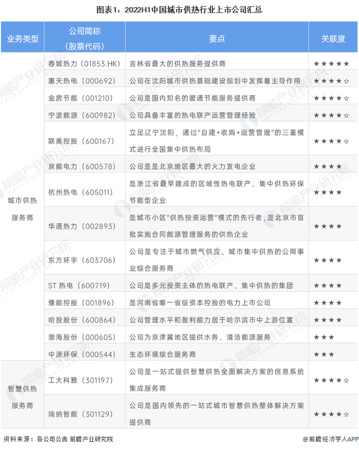 1、城市供热行业上市公司汇总