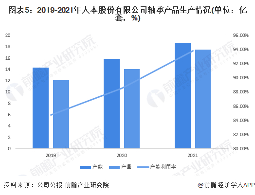 根据公司发布的招股说明书数据,2019-2021年人本股份有限公司轴承产品产能、产量及产能利用率均呈现逐年上涨的趋势,2021年人本股份有限公司轴承产品产能、产量及产能利用率分别为18.71亿套、17.56亿套以及93.85%。