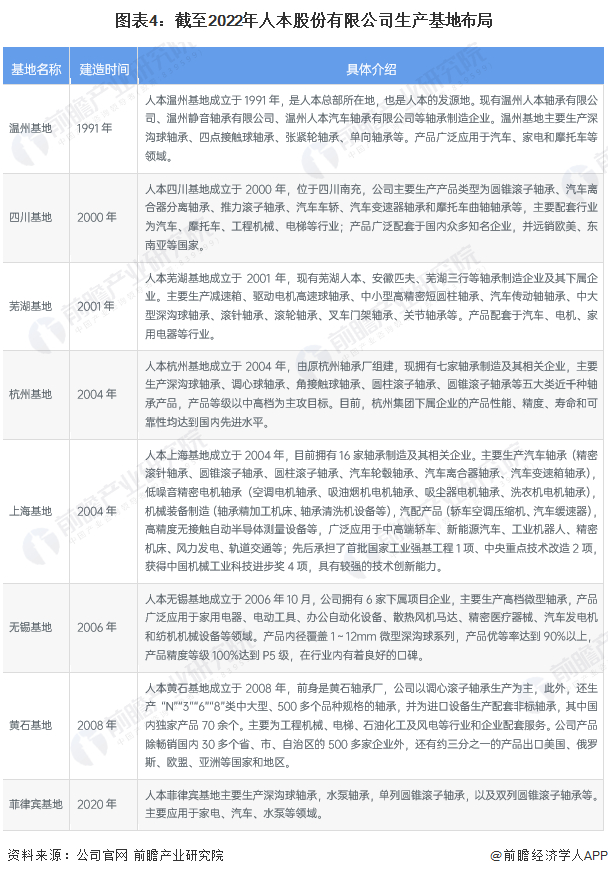 截至2022年,人本股份在温州、杭州、无锡、上海、南充、芜湖、黄石等地建有八大轴承生产基地,具体分布如下: