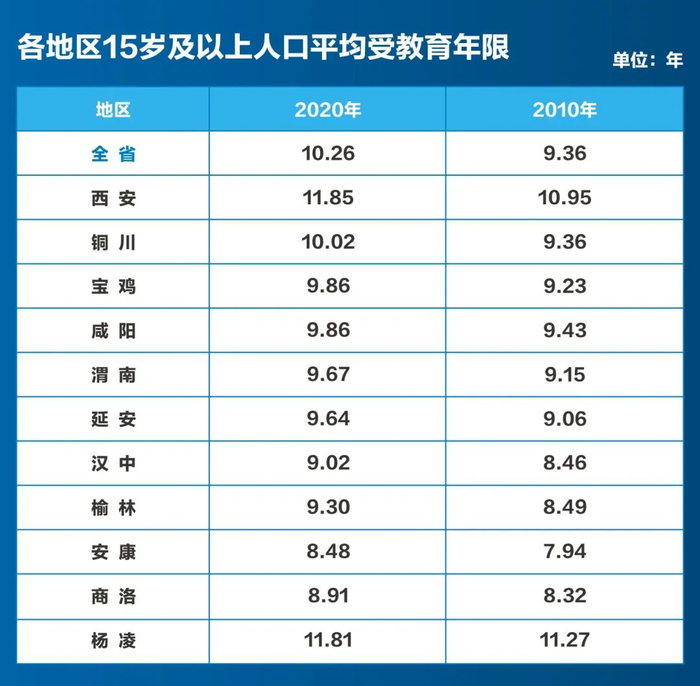 与2010年第六次全国人口普查相比,全省常住人口中,15岁及以上人口的平均受教育年限由9.36年提高至10.26年。