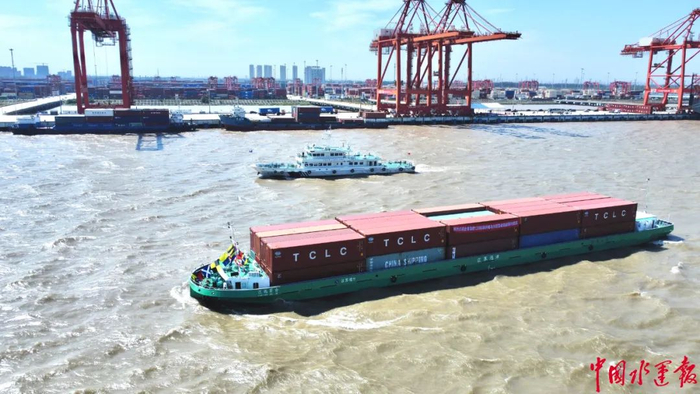 10月10日上午,全国首艘120标箱纯电动内河集装箱船“江远百合”轮首航,满载80个标箱货物,缓缓驶离太仓港码头,通过杨林塘、青杨港等航道,当天抵达苏州工业园区港码头。这标志着江苏省内河水运正式开启“纯电动时代”。