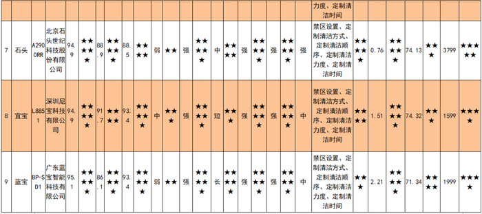 测试项目包括:清洁能力、避障功能、越障高度和智能防跌落、充电和续航时间等。