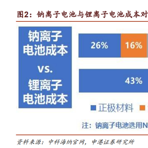 由于钠储量丰富,来源广泛,所以钠离子电池生产成本相对较低。振华新材公告称,其钠离子电池正极材料含税销售价格约为每吨7万元,动力型磷酸铁锂正极材料含税市场价格为15.55万-16.28万元/吨;动力型中镍5系三元材料含税市场价格为34.30万-37.80万元/吨。中科海纳评估称,与磷酸铁锂体系相比,钠离子电池材料的成本要低30%~40%。钠离子电池具有明显的成本优势。在能源消耗较大的领域,如储能,具有很好的应用前景。
