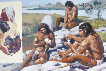 尼安德特人制造武器和工具想象图。