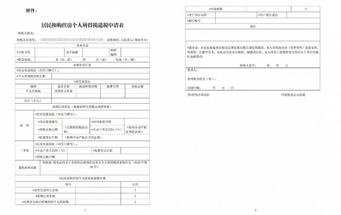 1.居民换购住房个人所得税退税申请表(税务窗口填写);