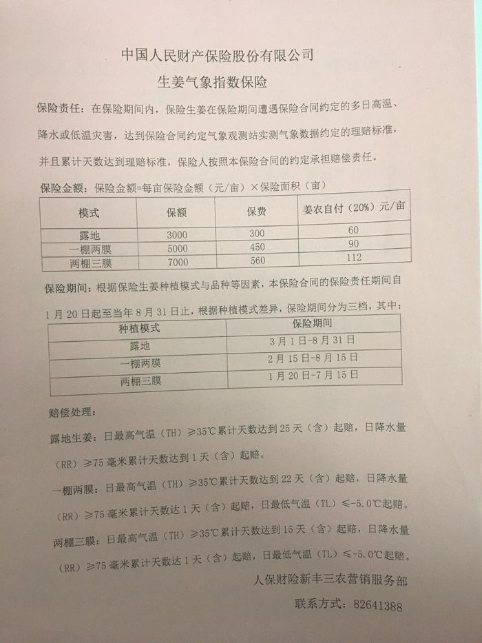 2018年,为了提高农户种植生姜的积极性,保证生姜种植业稳定发展,南湖区将生姜纳入政策性农业保险,在新丰镇开展生姜气象指数保险。