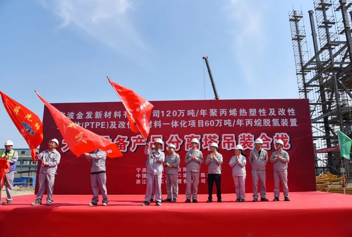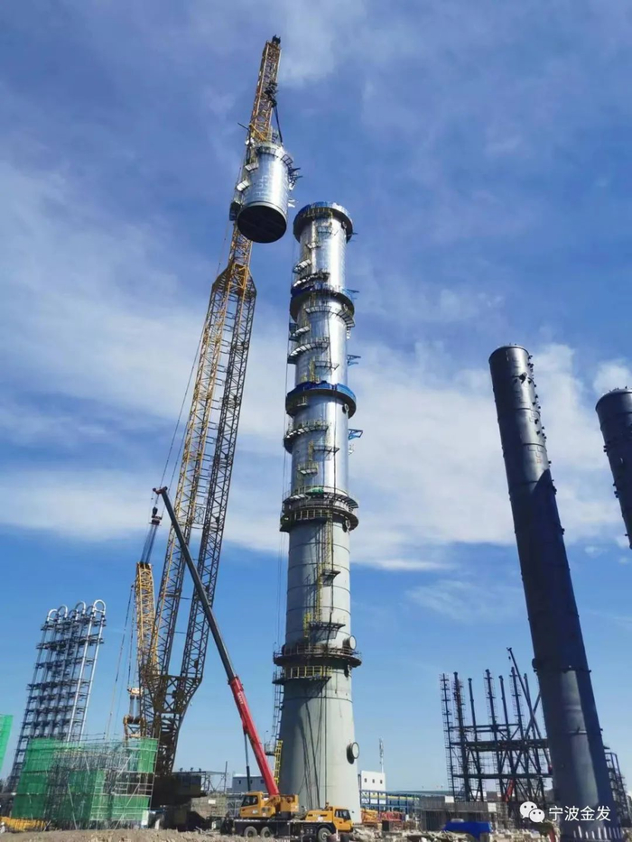 8月16日上午,宁波金发120万吨/年聚丙烯热塑性弹性体及改性新材料一体化项目60万吨/年丙烷脱氢装置大型设备产品分离塔第六段吊装一次成功,标志着公司年产60万吨丙烷脱氢装置主要大型塔类设备吊装全部就位,为项目全面进入工艺设备安装阶段奠定了基础。