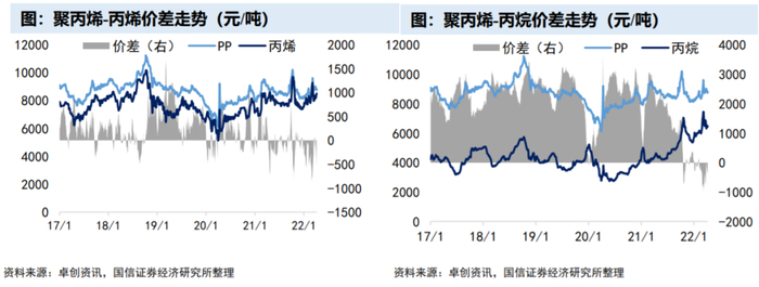 利润方面――受上游能源价格上涨的影响,目前部分PP装置利润已经出现了亏损,预期随俄乌局势的好转,全球能源价格有望呈现回调的趋势,丙烷价格有望回落,带动PP盈利的修复。