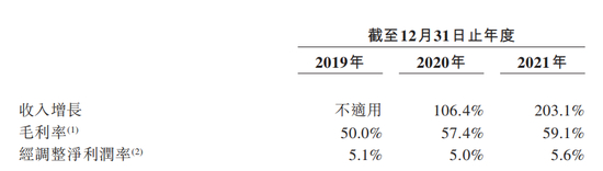 《招股书》显示,2019年-2021年,蕉下的营收分别为3.8亿元、7.9亿元和24.1亿元,年复合增长率为150.1%;同期非国际财务报告准则经调整净利润分别为1968万元、3941.2万元及1.36亿元,年复合增长率为162.6%。