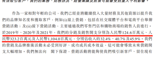 值得一提的是,除了超高的广告费用之外,蕉下居高不下的分销及销售开支与蕉下的业务模式也有关系。