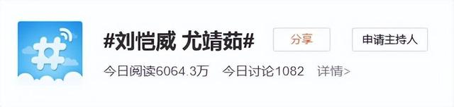随后,刘恺威尤靖茹的名字火速登顶热搜榜,引发热议。截至出稿前,今日阅读量破6064万。