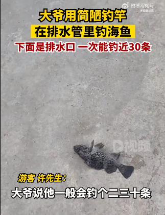 (原标题:大爷用简陋钓竿在排水管里钓海鱼 :下面是排水口,一次能钓30条)