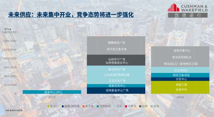 戴德梁行南京及合肥公司总经理魏建历表示,2022年三季度,南京商业及办公市场发展平稳,市场变革进一步加速,商办市场在建筑空间、办公空间、灵活办公体验、运营模式等方面将继续升级迭代。在零售市场方面,未来三年南京或将进入购物中心集中开业的高峰年,预计约20个中高端购物中心入市,这将使得租赁市场中的租户方拥有更多的议价能力。