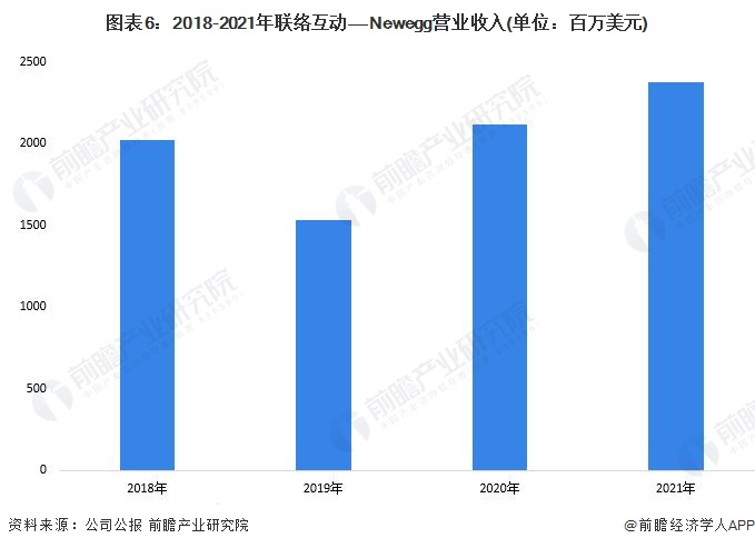 2018-2021年联络互动旗下跨境电商平台Newegg营业收入有所波动,2021年Newegg实现营业收入23.76亿美元,同比增长11%。