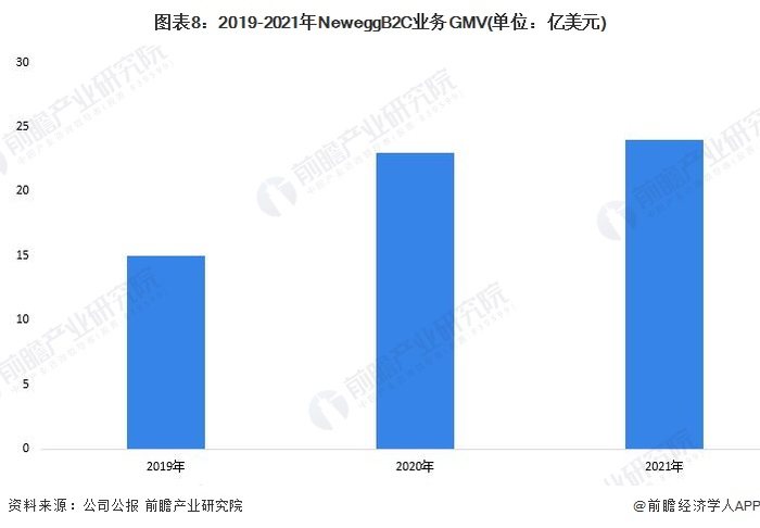 2009年新蛋网推出专门的B2B电子商务平台NeweggBusiness.com,Newegg才开始专注于建立B2B业务以利用蓬勃发展的B2B机遇。Newegg致力于提供办公和IT设备,NeweggBusiness.com提供越来越广泛的分类,包括寻找技术方面具有专业知识的客户主管以满足特定需求。2021年新蛋B2B业务产生的GMV为5.38亿美元。