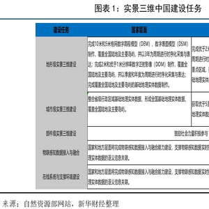 随着实景三维中国建设全面推进,我国地理信息产业将持续受益。首先,随着大数据、云计算、物联网、人工智能等新兴技术兴起,在物联感知数据与实体数据精准融合、海量实景三维数据轻量化处理等方面有望进一步实现突破,产业融合创新能力将进一步提升;其次,实景三维中国建设已经上升为国家战略,成为新型基础设施的重要组成部分,支撑环境建设进一步完善,海量时空数据将支撑数字产业发展壮大。《通知》提出,为数字孪生、城市信息模型(CIM)等应用提供统一的数字空间底座,实现实景三维中国泛在服务。最后,针对部件级实景三维建设,《通知》提出鼓励社会力量积极参与,通过需求牵引、多元投入、市场化运作的方式,开展部件级实景三维建设,预计将有更多的社会资本将进入这一领域。