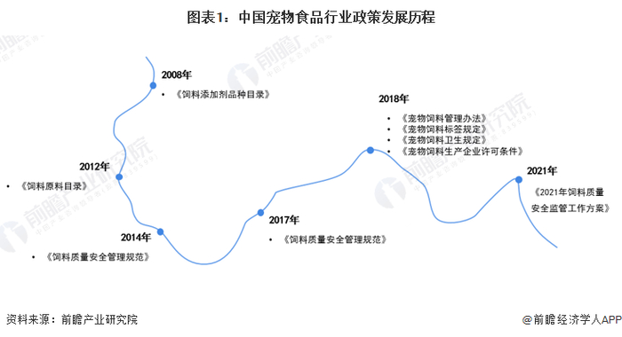 宠物食品行业是饲料行业的重要分支,早期与宠物食品行业直接相关的政策较少,行业发展方向通常跟随饲料行业政策的变化而调整。2018年,农业农村部发布多项宠物食品行业相关政策,包括《宠物饲料管理办法》《宠物饲料标签规定》《宠物饲料卫生规定》《宠物饲料生产企业许可条件》等,以规范宠物食品行业市场经营,推动我国宠物食品行业产业化、规模化、高效良性发展。