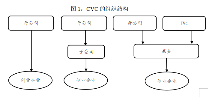 CVC 可选择的组织架构和治理结构较为丰富。母公司与 CVC 间卷入关系的紧密程度是 CVC 组织架构的主要决定因素。参照 Dushnitsky(2006)的研究,根据母公司卷入CVC程度的不同, 我们把CVC的组织结构按照卷入关系由“紧”到“松”区分为三种类型:直接模式、子公司模式和基金模式(下图)。