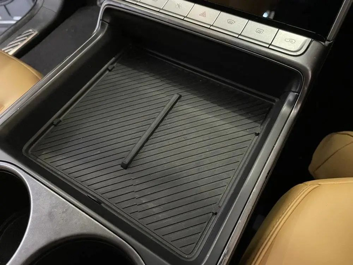更惨的情况是,这辆展车的手扶箱位置,已经出现了掉漆的情况。目前尚不清楚,是因为展车“接待”了太多来看车的用户,还是因为试装车在生产过程中存在工艺缺陷。
