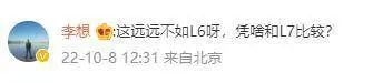 在10月8日,李一男召开新车发布会的当天,李想在一条分析自游家NV与理想L7参数对比的微博下评论道:“这远远不如L6呀,凭啥和L7比较?”