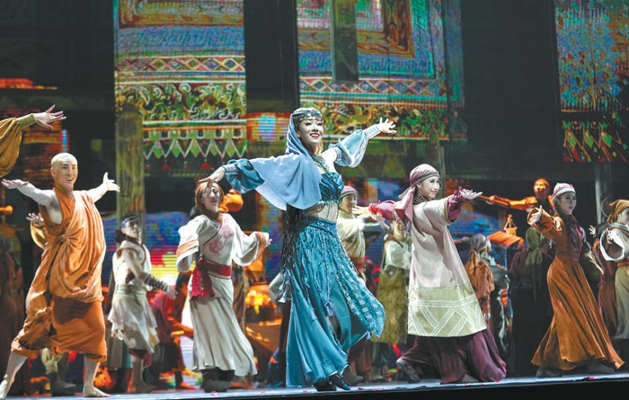 以国家一级文物“五星出东方利中国”汉代织锦护臂为题材创作的舞剧《五星出东方》,诠释了各族人民“像石榴籽一样紧紧抱在一起”,结成中华民族共同体的主题。本报记者 方非摄