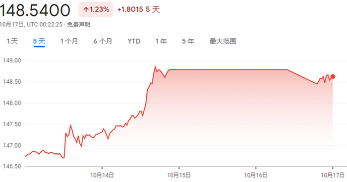 周一东京早盘交易中,美元兑日元依旧保持在148.60附近,虽然较上周五高点148.862有所回落,但仍处于历史高位。