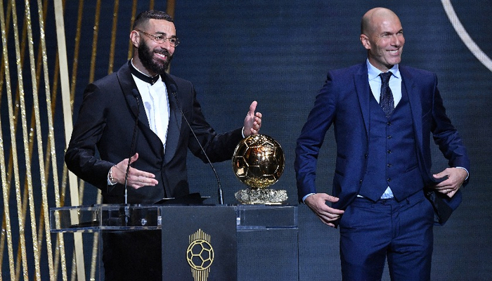 在颁奖典礼上,法国足球史上第一人齐内丁·齐达内成为本泽马的颁奖人,他是1998年的金球奖得主,而本泽马则是齐达内之后第一位拿下这份荣誉的法国球员。