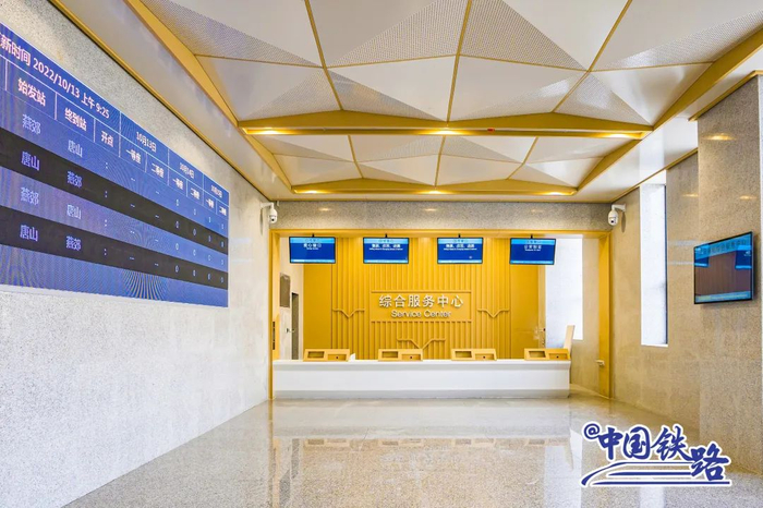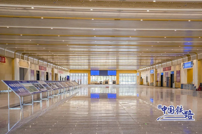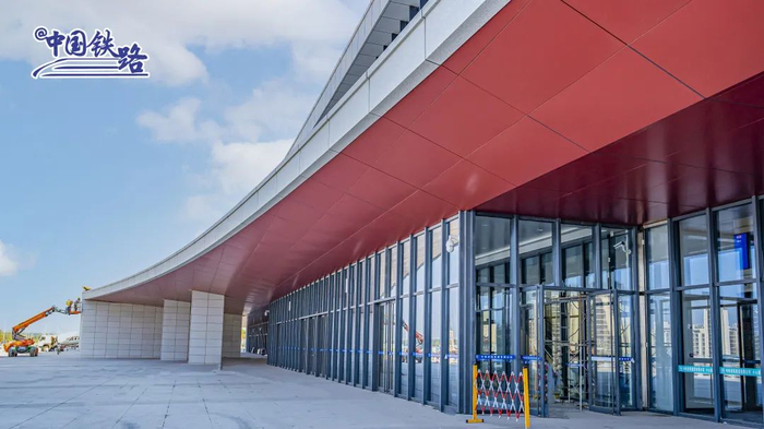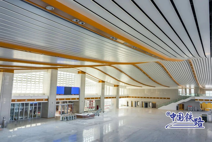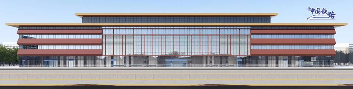 该站房设计理念结合山水与现代商业城市概念,整体呈现现代、大气的建筑风格,建筑立面对称规整,犹如张开的双臂,欢迎八方游客。