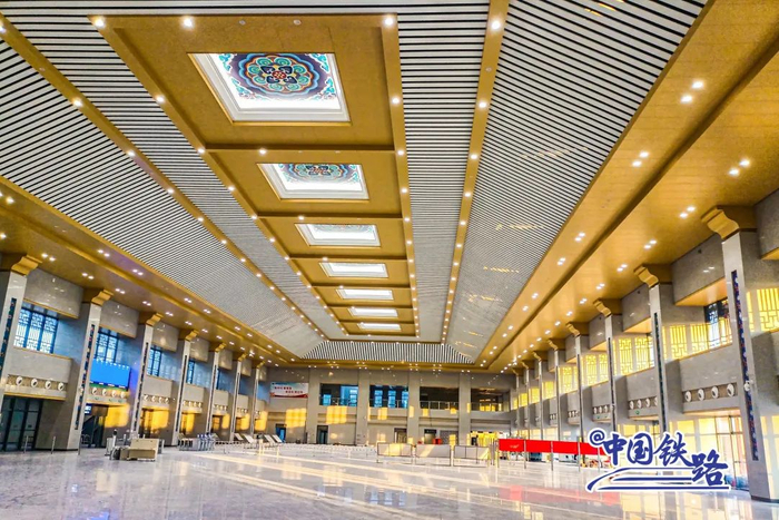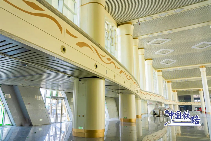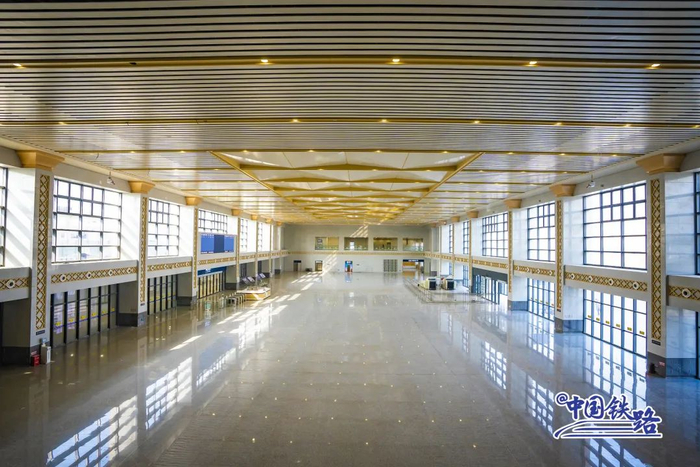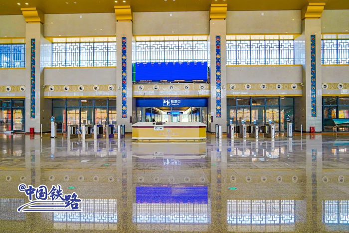一层候车厅的墙体装饰加入景泰蓝的元素,与外部中式建筑风格呼应,充分展示了“中国景泰蓝之乡”文化风格。