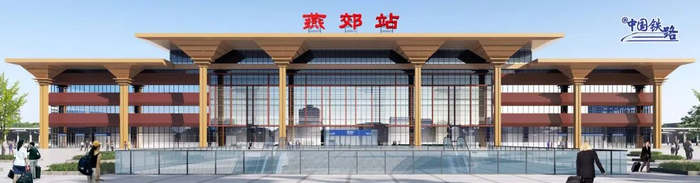 燕郊站正在进行原址扩建改造,改造后的燕郊站为高铁和普速混合型车站,车站综合楼总建筑面积11982平方米,高铁站场规模为2台4线,车站外观提取京榆古道、行宫文化的中式建筑元素。