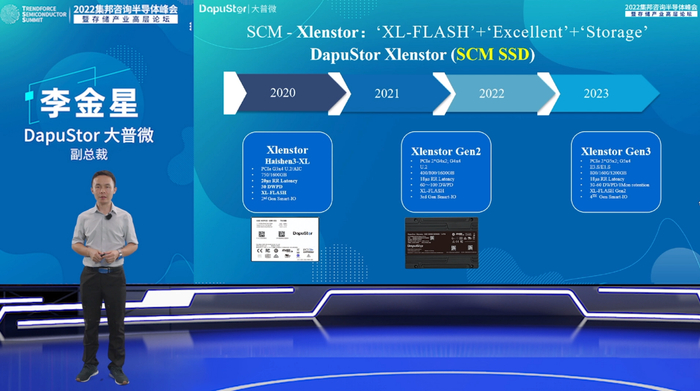 大普微是国内高端企业级存储产品提供商,在PCIe Gen5、Smart IO、SRIOV、ZNS、CSD、Dual Port、SCM等众多领域均有布局。其中,SCM领域,大普微重点展示了Xlenstor Gen2的出众性能表现,该款产品也被外媒评为英特尔傲腾系列强劲的挑战者。此外,大普微还在会上重磅介绍业界首款PCIe 5.0 E1.S产品——DapuStor Haishen5。