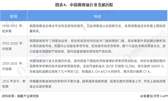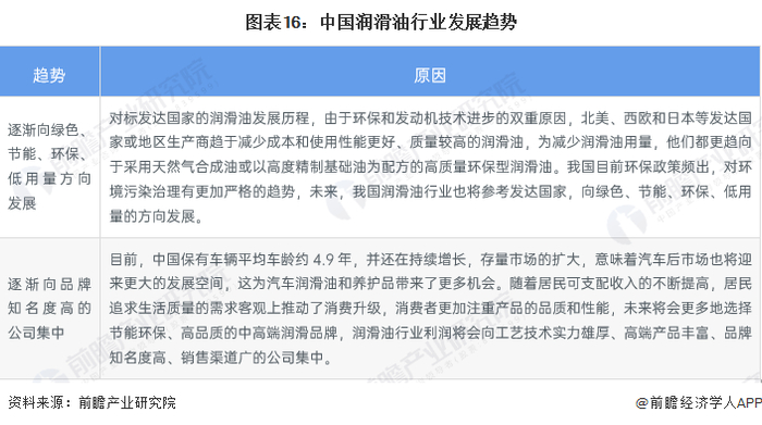 更多本行业研究分析详见前瞻产业研究院《中国润滑油行业市场前景预测与投资战略规划分析报告》,同时前瞻产业研究院还提供产业大数据、产业研究、政策研究、产业链咨询、产业图谱、产业规划、园区规划、产业招商引资、IPO募投可研、IPO业务与技术撰写、IPO工作底稿咨询等解决方案。