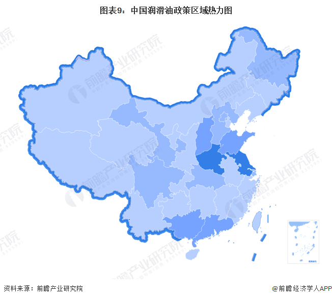 从前瞻统计得到的各省市政府部门出台的与润滑油发展相关的政策数量来看,江苏省和河南省出台润滑油相关政策数量较多,政策推动石油化工产业向高端润滑油方向发展,建立特色鲜明、具有区域竞争力的石油化工创新体系。