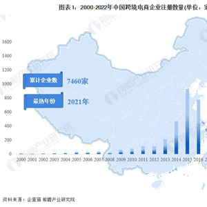 据中国企业数据库企查猫,目前中国跨境电商行业的主要企业共有7460家,其中以2021年为主要注册热潮,2021年注册企业数量为1486家。