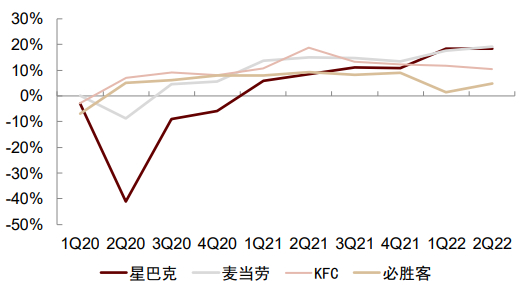 注:星巴克为北美地区同店数据,其余为美国地区同店数据