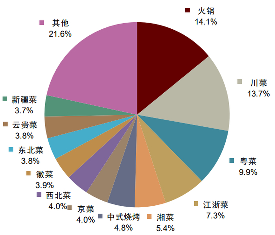 我们认为赛道选择决定餐企成长空间。我们认为能孕育出大品牌的赛道需满足三个条件:需求大、供给稳定、易标准化。需求方面,根据弗若斯特沙利文,2020年中国餐饮市场总规模约4万亿元,其中中餐占比79%、西餐占比15%、其他菜式占比6%。中餐菜系众多,不同菜系的口味接受度的差异决定了其市场空间的差异。如辣口味备受中国消费者喜爱(根据《2021年中国连锁餐饮行业报告》,在消费者最爱的口味中,辣的占比达到41.8%),2020年以辣口味为主的火锅和川菜在中餐市场收入占比分别达14.1%和13.7%,和其他品类相比市场规模相对较大。易标准化方面,产品制作相对简单、对厨师的技艺能力要求较低的火锅和饮品,以及对门店服务要求较低的小吃快餐,相较而言更容易实现标准化,因此具有更高的连锁化率。