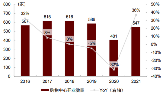 注:统计范围为全国368个城市(不含港澳台)管辖行政区内,商业建筑面积3万方及以上的购物中心及独立百货