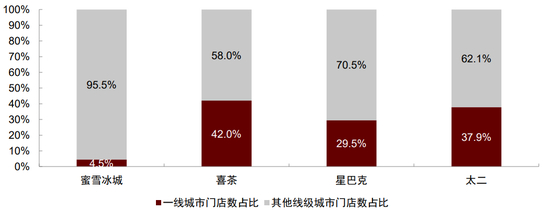 ►门店拓展策略:根据品牌定位、管理能力和发展阶段差异,选择合适的门店拓展策略(其维度包括拓店速度、区域加密或开拓新城市以及高线和低线城市的选择等)。如基于强大供应链和灵活健康单店模型,百胜中国疫情期间仍维持较快拓店速度;茶颜悦色聚焦长沙进行区域加密以避免跨地域经营的管理难度;蜜雪冰城等性价比路线公司在门店拓展上更聚焦下沉市场,而喜茶、星巴克等品牌溢价路线公司仍以高线级城市为主。