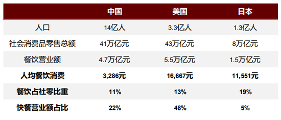资料来源:国家统计局,美国餐饮协会,《中国餐饮报告2019》,欧睿数据库,弗若斯特沙利文,日本经济产业省,日本食品服务协会,中金公司研究部