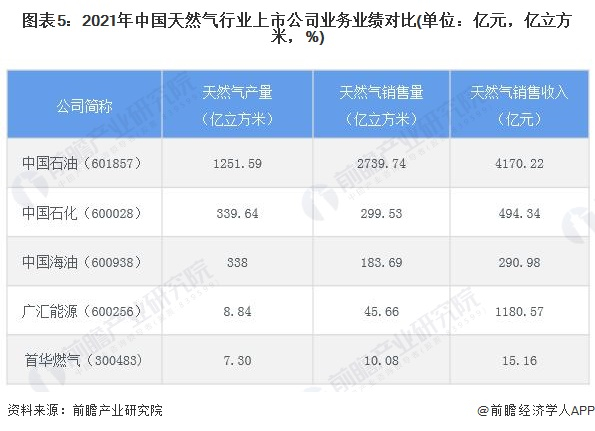 天然气行业代表性企业业务规模