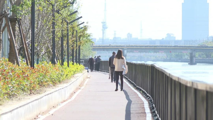 松江区新闻办介绍,全长46公里的淀浦河西起淀山湖、东至黄浦江,其松江段两岸近日新添了11.3公里滨水绿带。市民可沿河岸“慢行通道”步行或骑行,享受秋日之美。